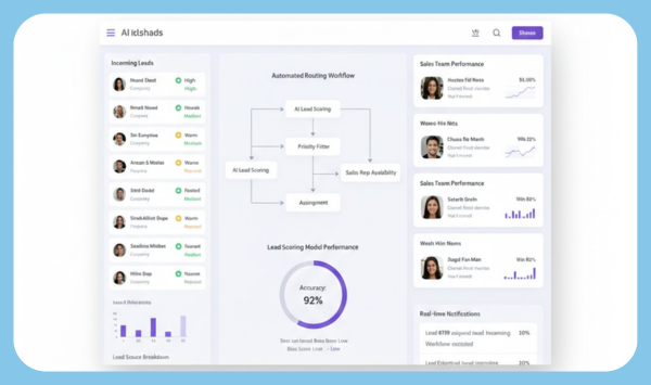 AI-powered lead assignment is an intelligent process that uses Artificial Intelligence (AI), Machine Learning (ML), and data-driven logic to automatically analyze, prioritize, and route sales leads.